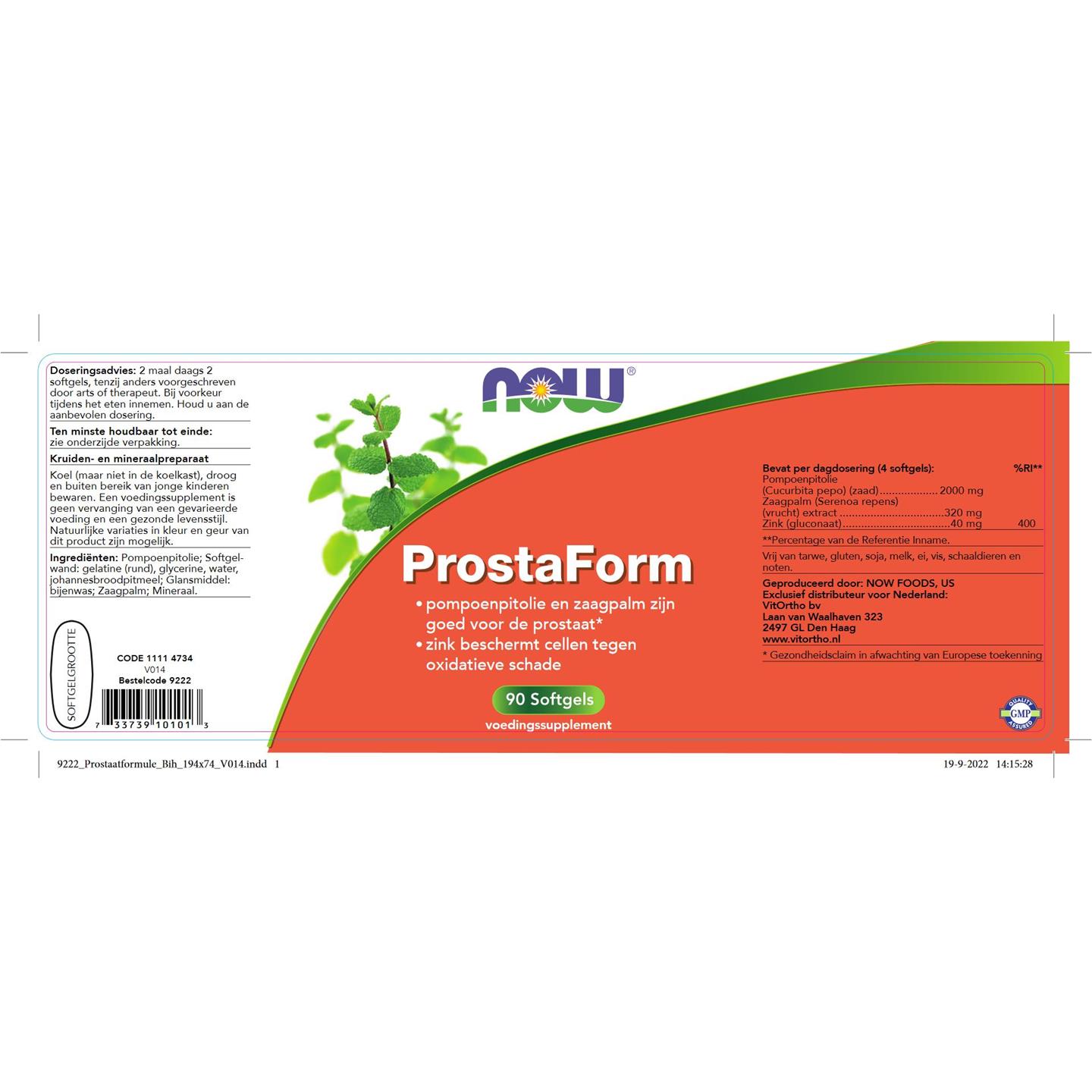 Pompoenpit (Cucurbita pepo) zaad olie, Softgel (Gelatine (rund), Glycerine, Water, Johannesbroodpitmeel), Glansmiddel (Bijenwas), Zaagpalm (Serenoa repens) vrucht extract, Zinkgluconaat.