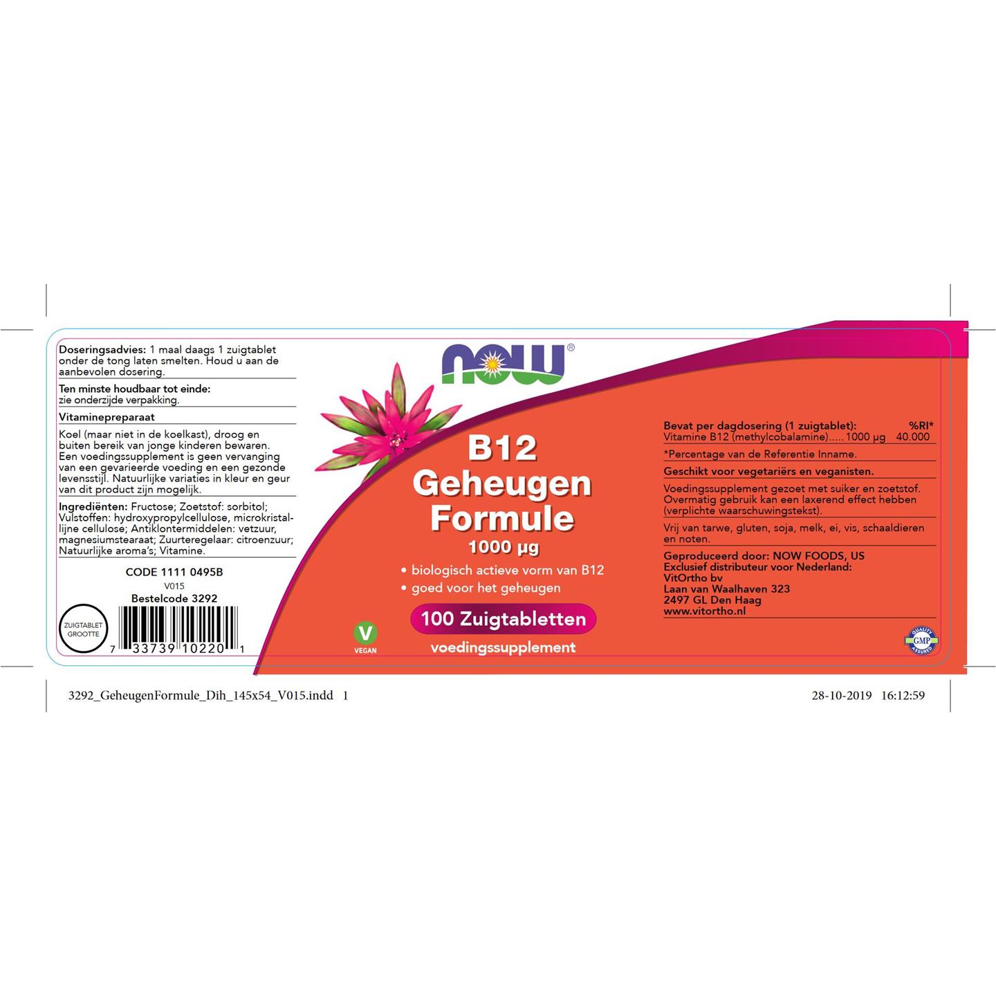 NOW B12 Geheugen Formule 1000 mcg 100 zuigtab