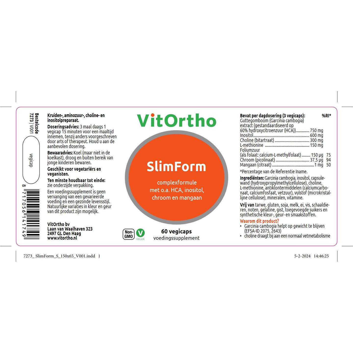 Garcinia cambogia, Inositol, Capsule (Hydroxypropylmethylcellulose), Choline, L-Methionine, Antiklontermiddelen (Calciumcarbonaat, Calciumfosfaat, Vetzuur), Vulstof (Microkristallijne cellulose), Mineralen, Vitamine.