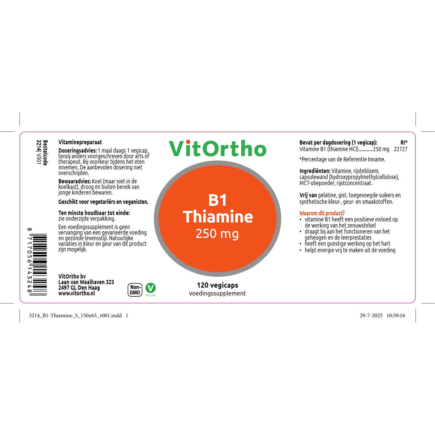 VitOrtho B1 Thiamine 250 mg 120 vcaps