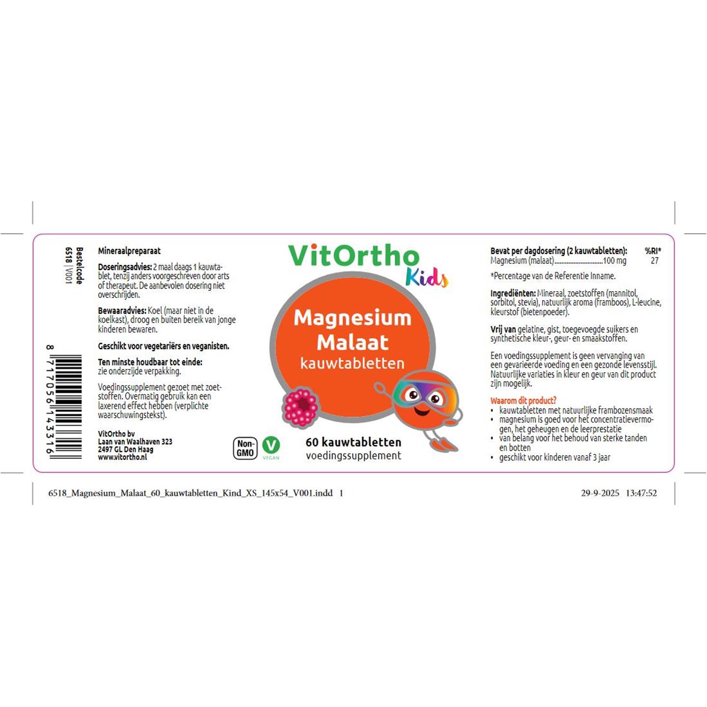 VitOrtho Magnesium Malaat Kind 60 kauwtab