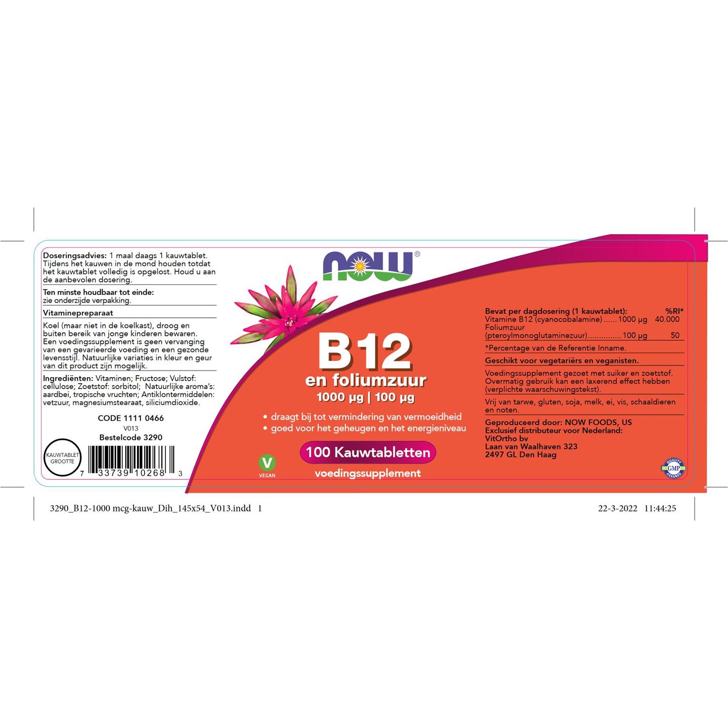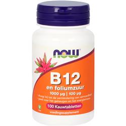 NOW B12 1000 mcg en foliumzuur 100 mcg 100 kauwtab