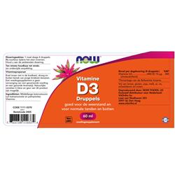 NOW Vitamine D3 druppels 400 IE 60 ml