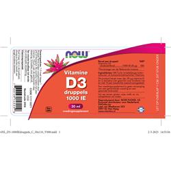 NOW Vitamine D3 druppels 1000 IE 30 ml