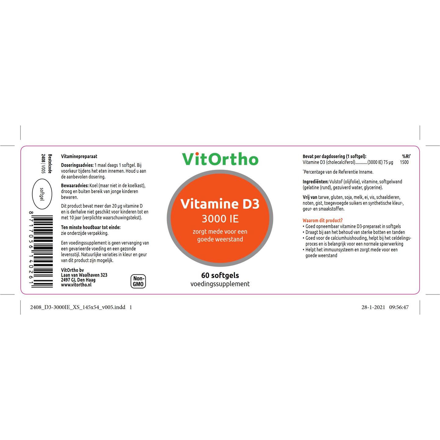VitOrtho Vitamine D3 3000 IE 60 softgels