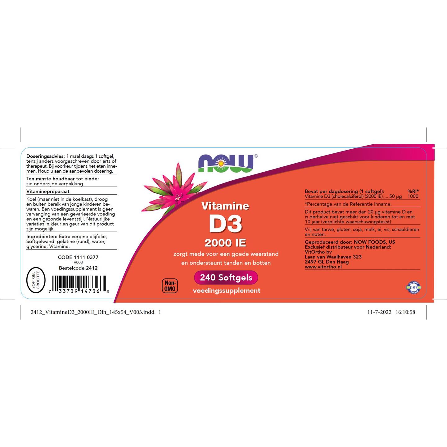 NOW Vitamine D3 2000 IE 240 softgels