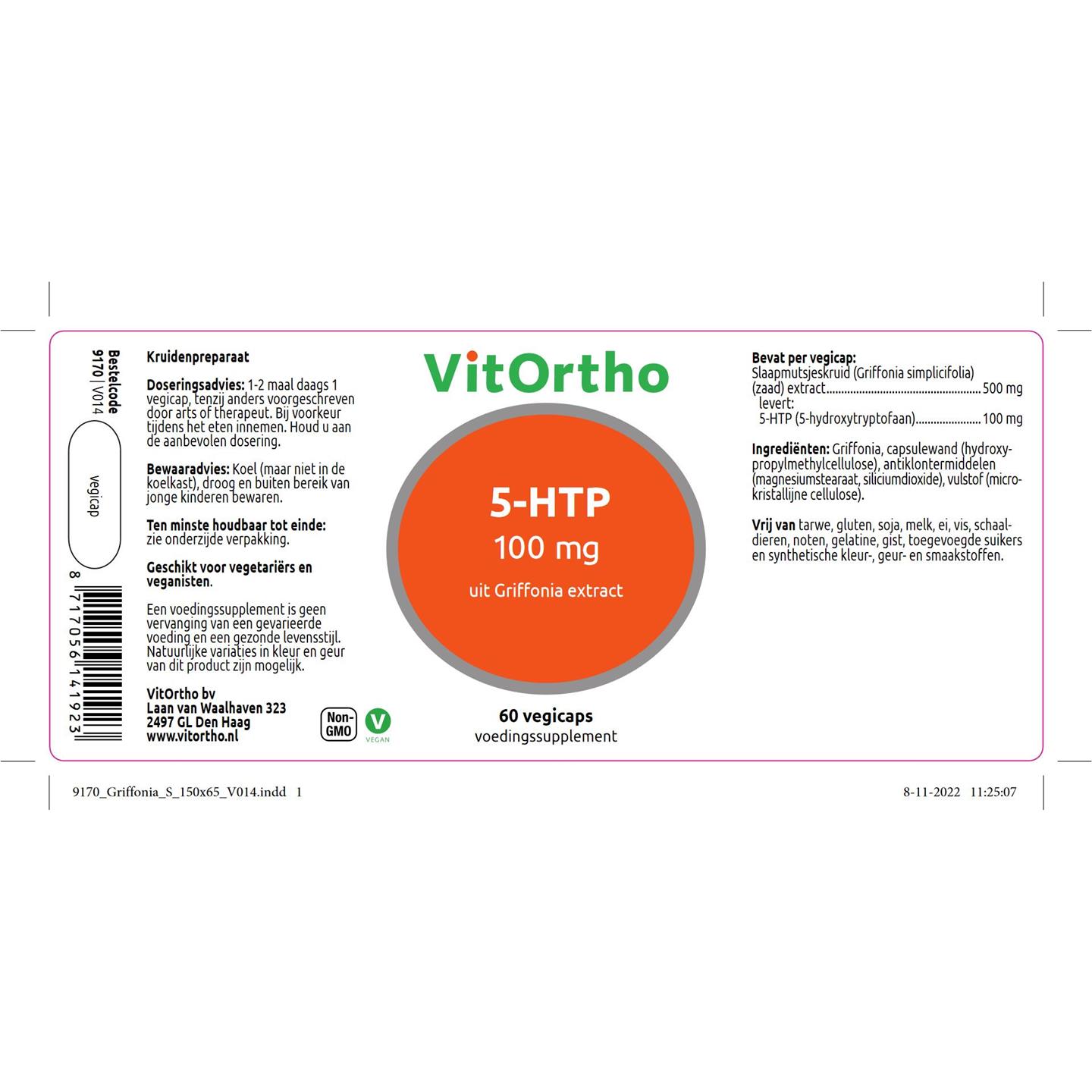 VitOrtho 5-HTP 100 mg uit Griffonia extract 60 vcaps