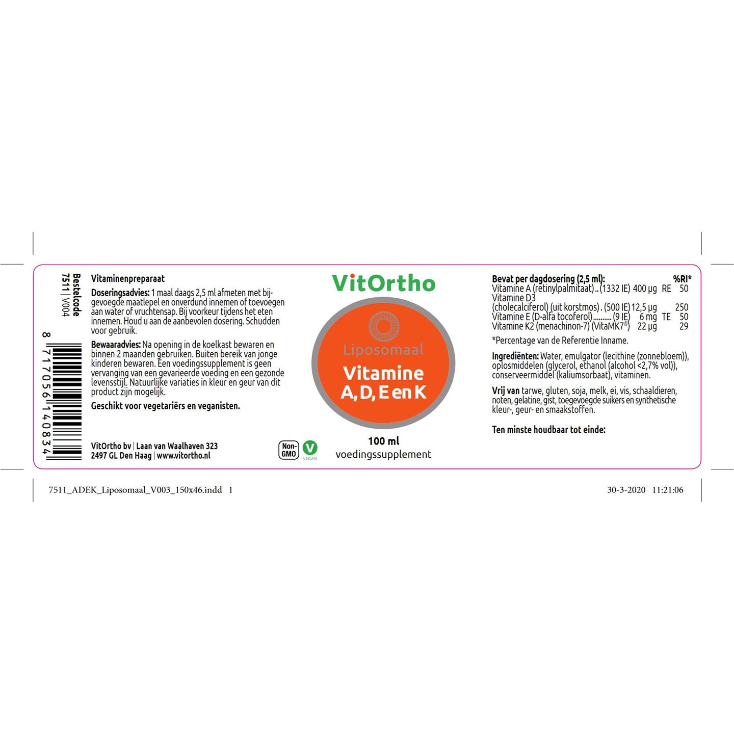 VitOrtho Vitamine A, D, E en K Liposomaal 100 ml