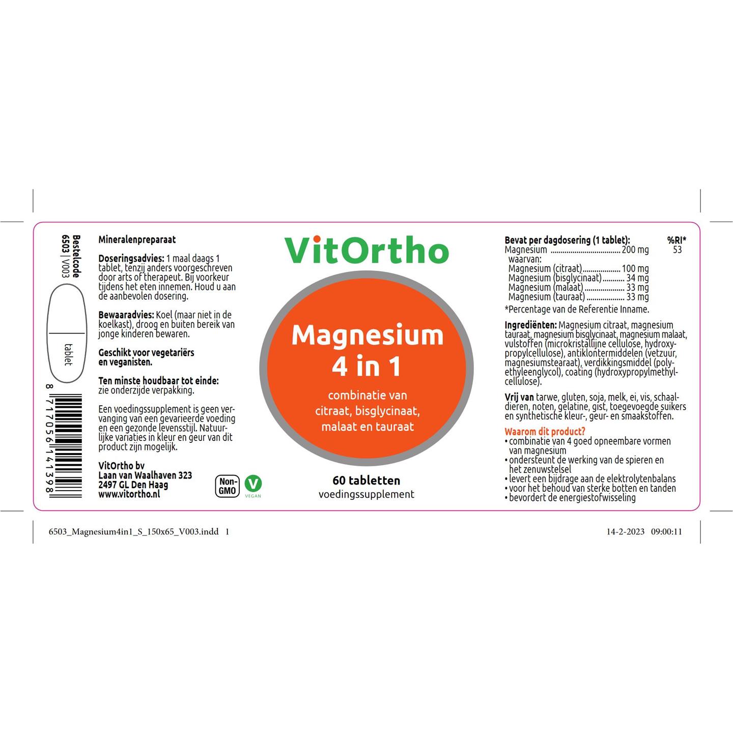 Magnesiumcitraat, Magnesiumtauraat, Magnesiumbisglycinaat, Magnesiummalaat, Vulstoffen (Microkristallijne cellulose, Hydroxypropylcellulose), Antiklontermiddelen (Vetzuur, Magnesiumstearaat), Verdikkingsmiddel (Polyethyleenglycol), Coating (Hydroxypropylmethylcellulose).