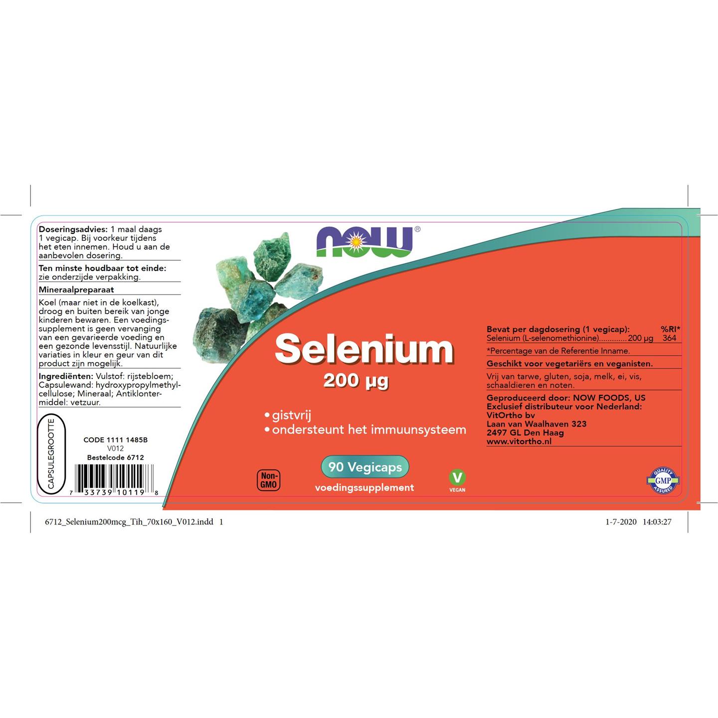 Vulstof (Rijstebloem), Capsule (Hydroxypropylmethylcellulose), Selenium (L-selenomethionine), Antiklontermiddel (Vetzuur).