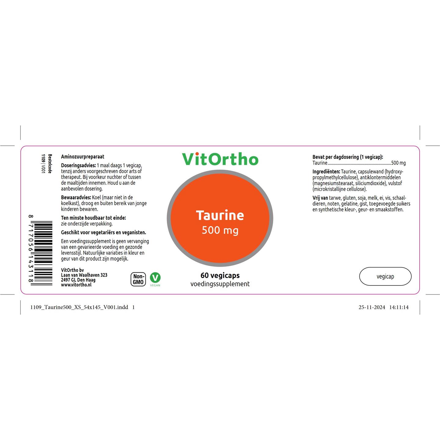 VitOrtho Taurine 500 mg 60 vcaps