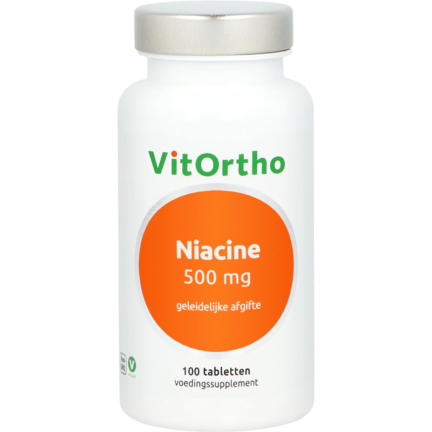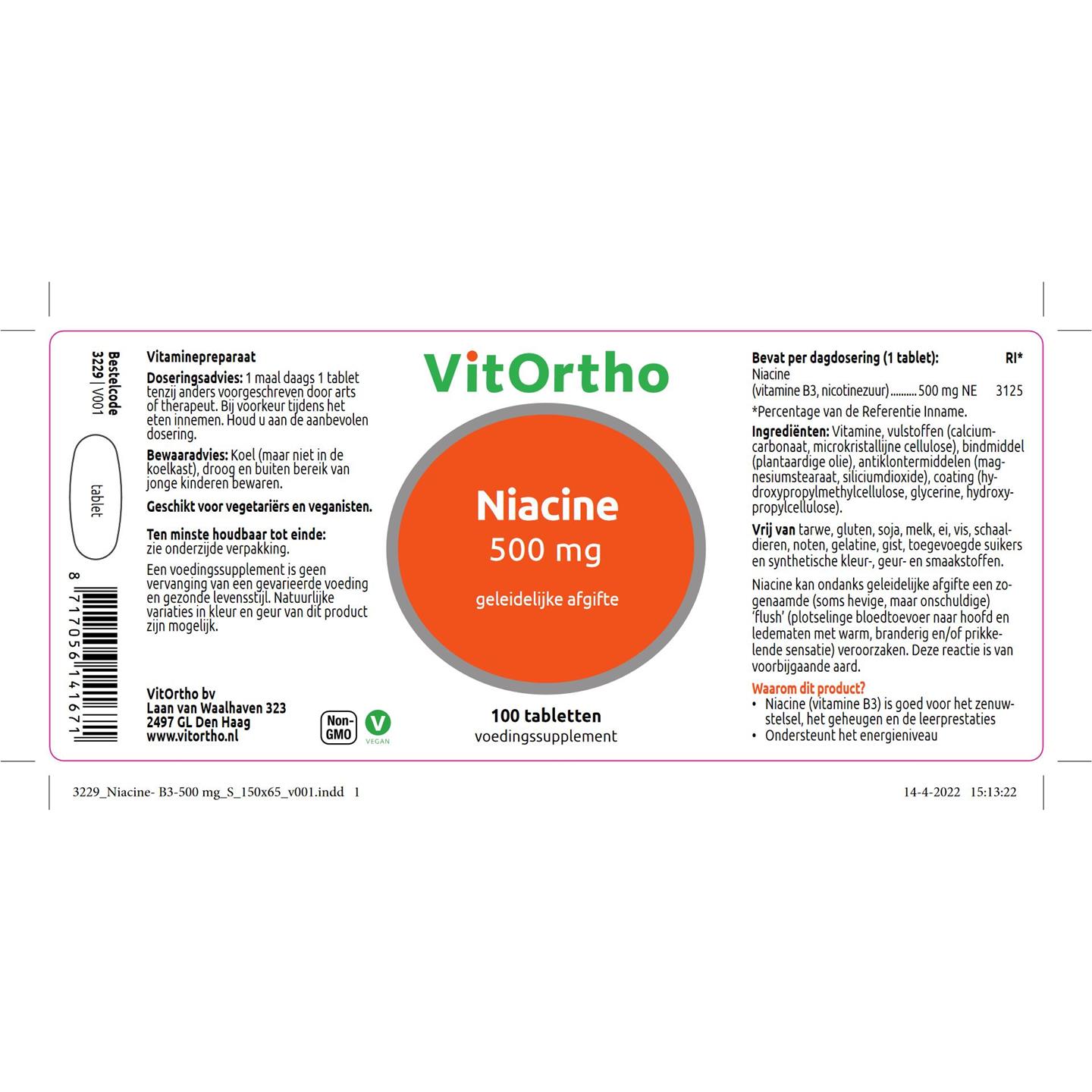 Vitamine B3 (niacine (nicotinezuur)), Vulstoffen (Calciumcarbonaat, Microkristallijne cellulose), Bindmiddel (Plantaardige olie), Antiklontermiddelen (Magnesiumstearaat, Siliciumdioxide), Coating (Hydroxypropylmethylcellulose, Glycerine, Hydroxypropylcellulose).