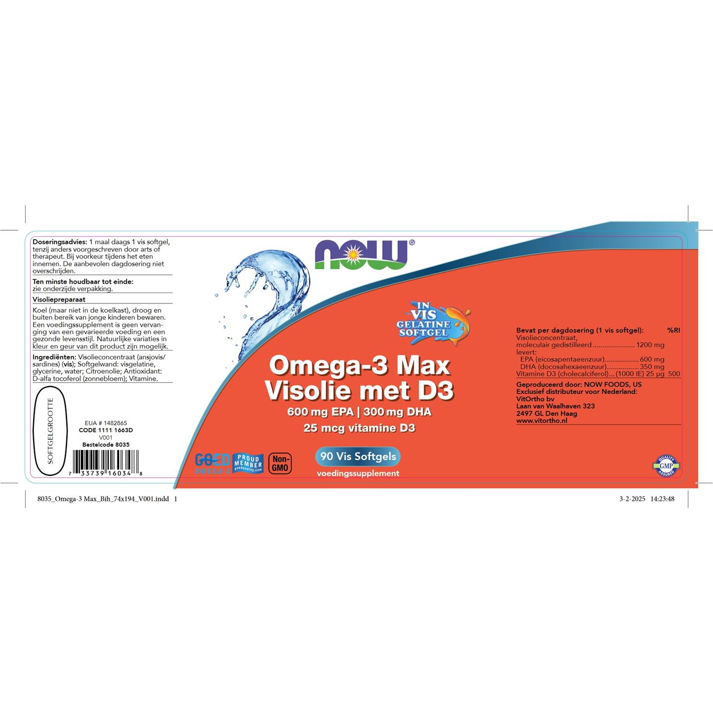 NOW Omega-3 Max Visolie met D3 90 vsoftgels