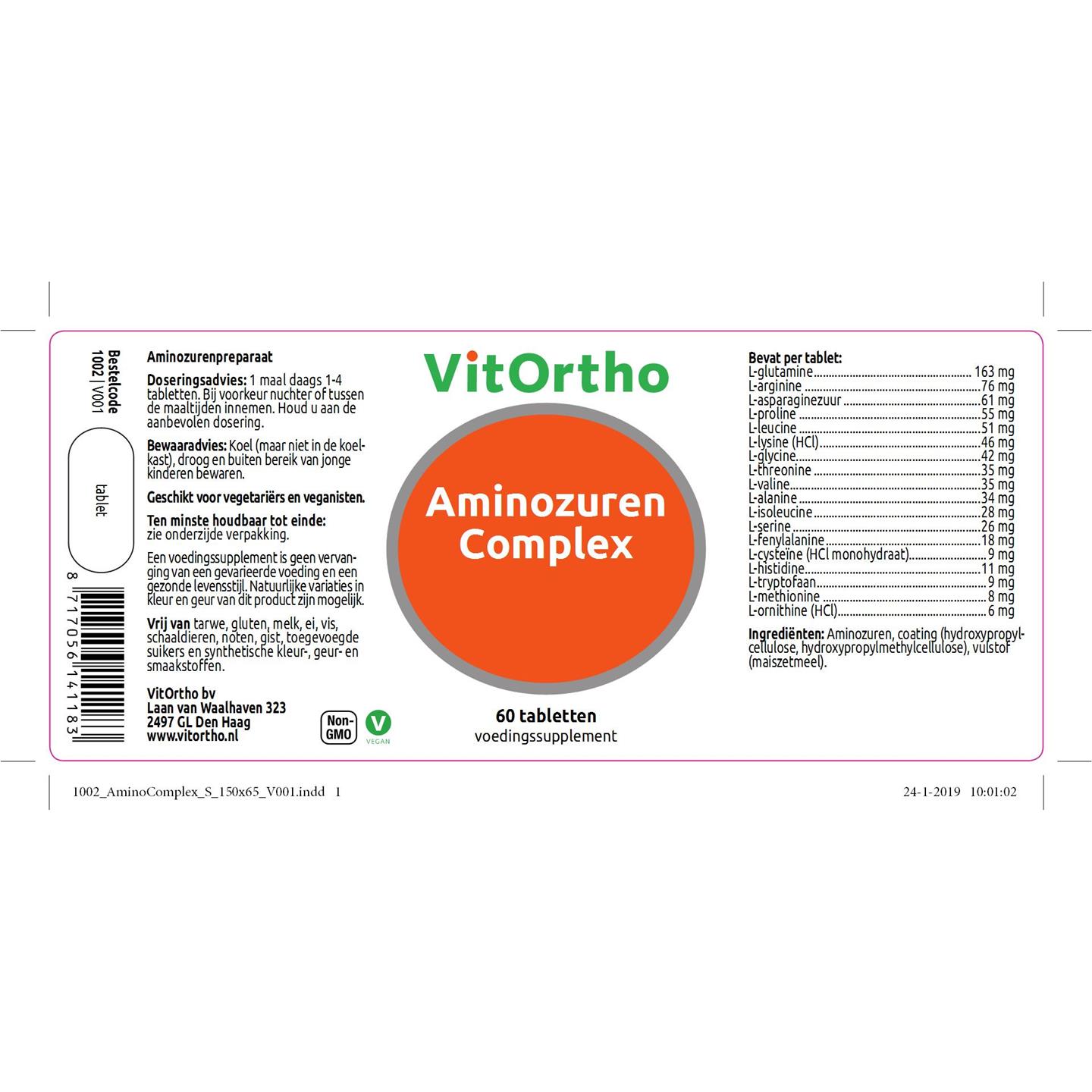Aminozuren, Coating (Hydroxypropylcellulose, Hydroxypropylmethylcellulose), Vulstof (Maïszetmeel).