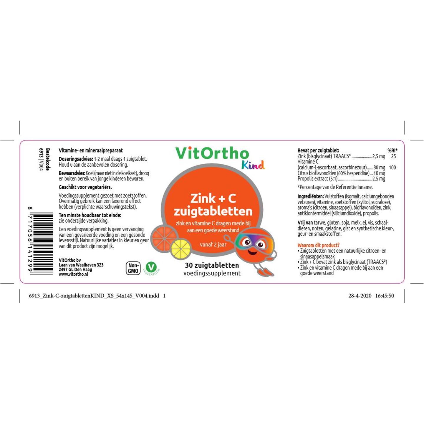 VitOrtho Zink + C zuigtabletten Kind 30 zuigtab
