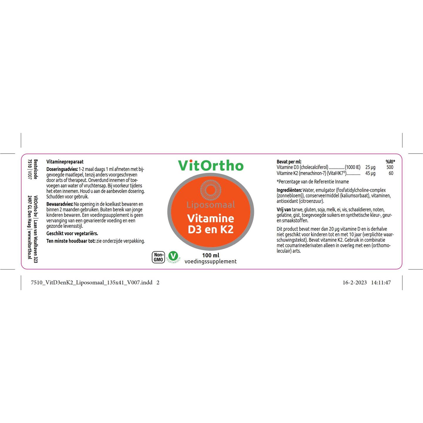 VitOrtho Vitamine D3 en K2 Liposomaal 100 ml