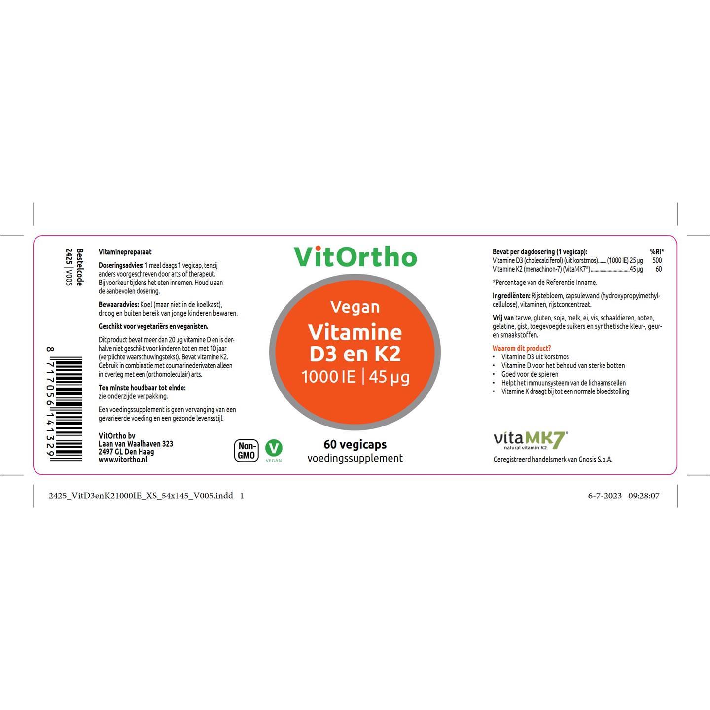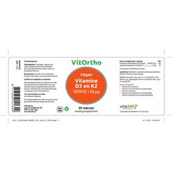 VitOrtho Vitamine D3 1000 IE en K2 45 mcg Vegan 60 vcaps